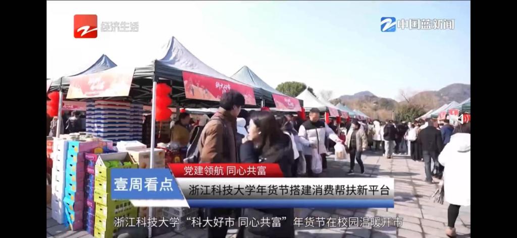 1月8-9日,浙江科技大學(xué)“科大好市 同心共富”年貨節(jié)在校園溫暖開市。年貨節(jié)以黨建聯(lián)建為紐帶,搭建“共富橋”消費(fèi)幫扶新平臺。浙江經(jīng)視、搜狐網(wǎng)等媒體對年貨節(jié)進(jìn)行了報(bào)道。