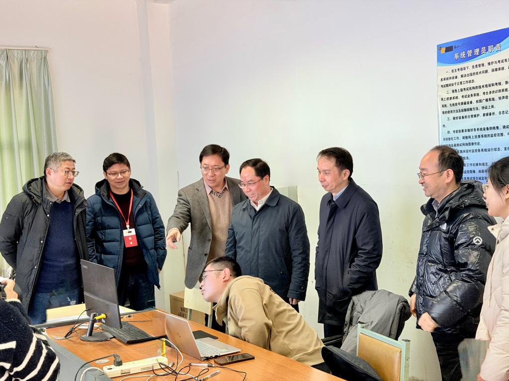 1月22日上午,校黨委書記趙東福、校長陳建孟、副校長李其朋一行來到小和山校區(qū)期末考試各考場,巡視檢查考試組織、考風(fēng)考紀(jì)及考場秩序,并實(shí)地查看了學(xué)校最新引入的AI智能巡考平臺運(yùn)行情況,指導(dǎo)誠信考試與教學(xué)信息化建設(shè)工作。