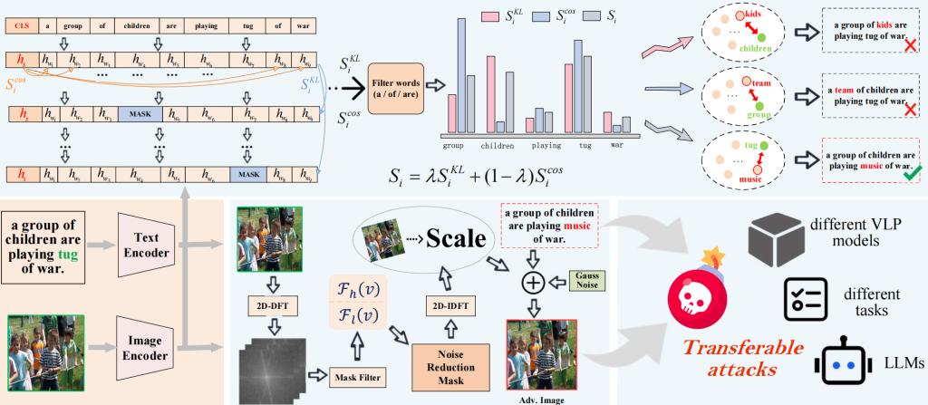 視覺-語言預(yù)訓(xùn)練(Vision-language pretraining, VLP)模型在圖文理解任務(wù)中展現(xiàn)出卓越性能,但仍極易受到可遷移對抗性攻擊的影響。針對其局限性,論文提出一種基于頻域調(diào)整的對抗性攻擊方法。此外,研究還引入細粒度特征提取技術(shù),用于優(yōu)化圖文對齊,進一步提升跨模態(tài)攻擊的可遷移性。實驗結(jié)果表明,在 Flickr30K 和 MSCOCO 數(shù)據(jù)集上,針對融合模型(fusion models)與對齊模型(alignment models)這兩大 VLP 架構(gòu),以及多個任務(wù)的測試中,所提方法均實現(xiàn)了更優(yōu)異的攻擊可遷移性與泛化性能。